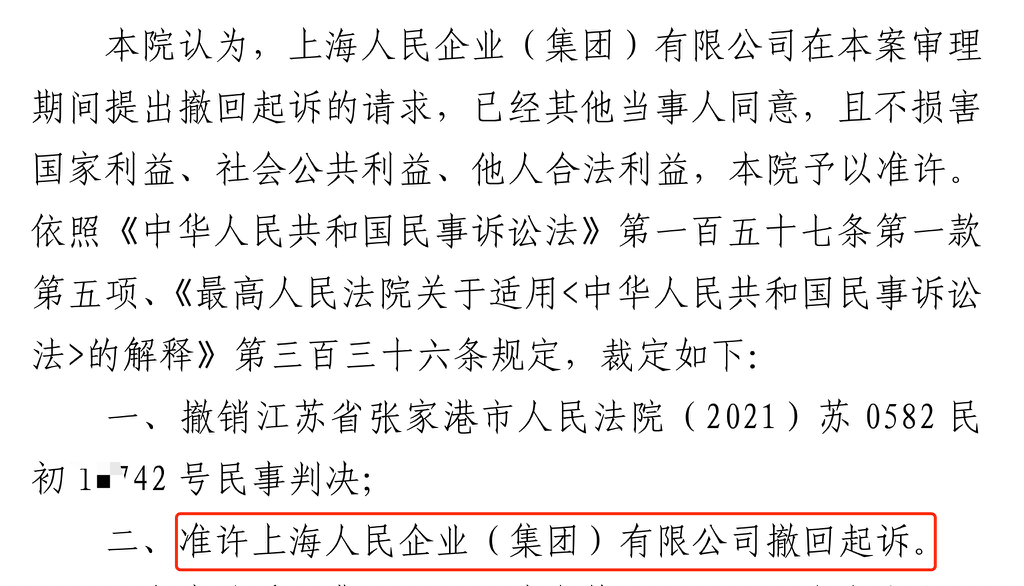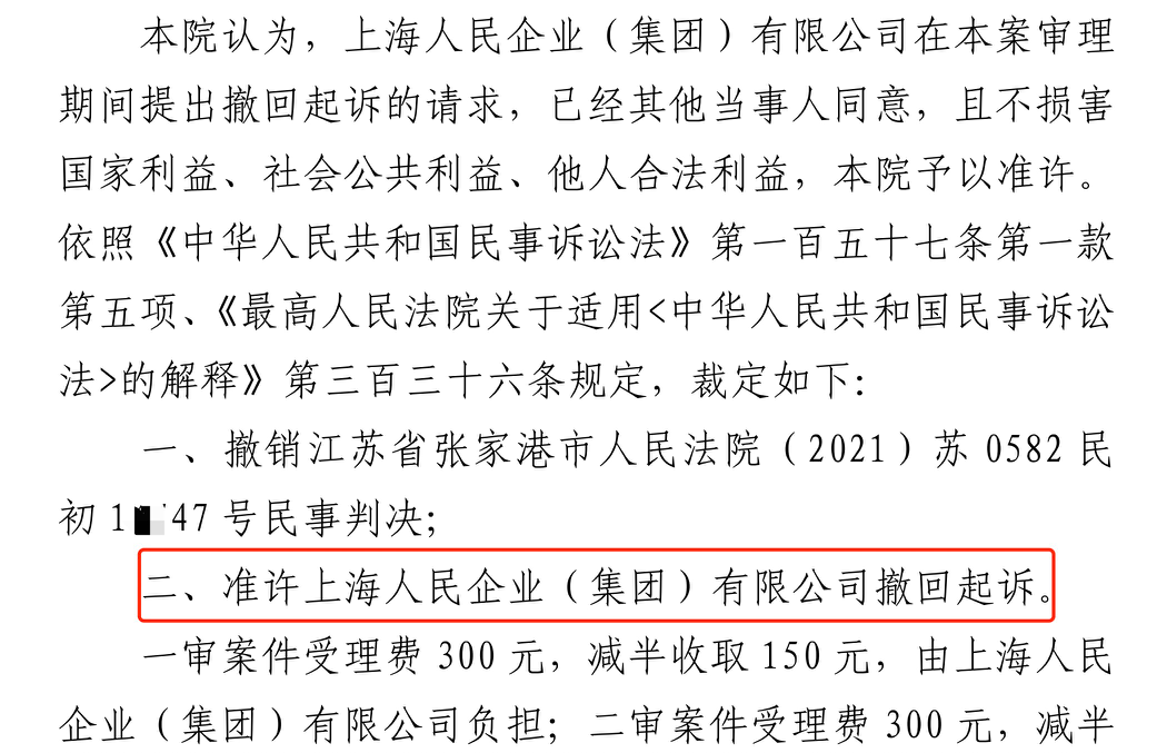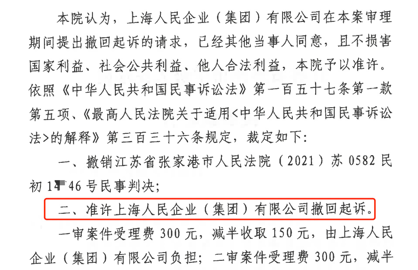 日喀则胜诉佳讯 | 人民企业系列案苏州六案上海人民公司撤诉